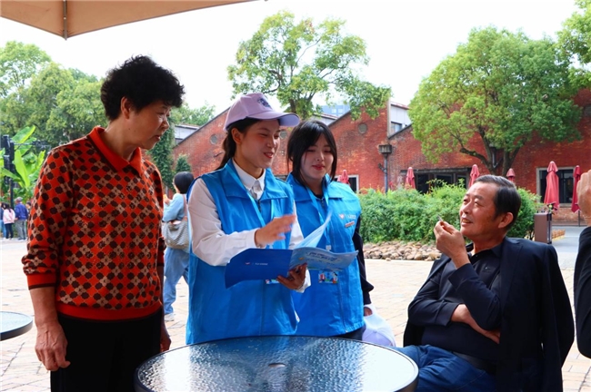 在陶溪川的中心广场,宣讲团带着宣传手册,向游客介绍“两弹一星”精神的内涵和时代价值。