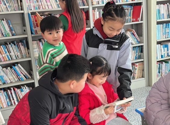 活动伊始,志愿者就把精心挑选的儿童绘本、童话故事书、科普读物摆上书架,让小朋友们自由挑选。孩子们三三两两围坐在一起,有的认真翻阅绘本,有的轻声分享书中的有趣情节,还有的拉着志愿者询问故事里的小知识。农家书屋里安静有序,只听见书页翻动的沙沙声和孩子们偶尔的欢笑声。
