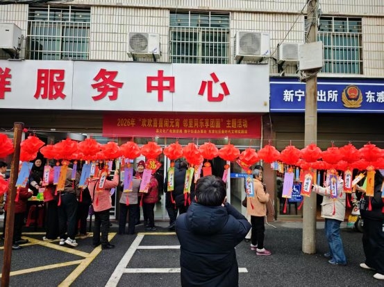 活动现场人声鼎沸,节日氛围浓郁。社区干部与志愿者早早布置好场地,红灯笼高高挂起,彩纸灯谜随风轻扬,每一处细节都藏着用心与暖意。伴随着悠扬喜庆的歌声,居民们扶老携幼、结伴而来,脸上洋溢着期待与喜悦。原本熟悉的社区广场,此刻变成了欢乐的海洋,老人的慈祥笑容、孩子的清脆笑声、年轻人的活力身影,交织成最动人的人间烟火。