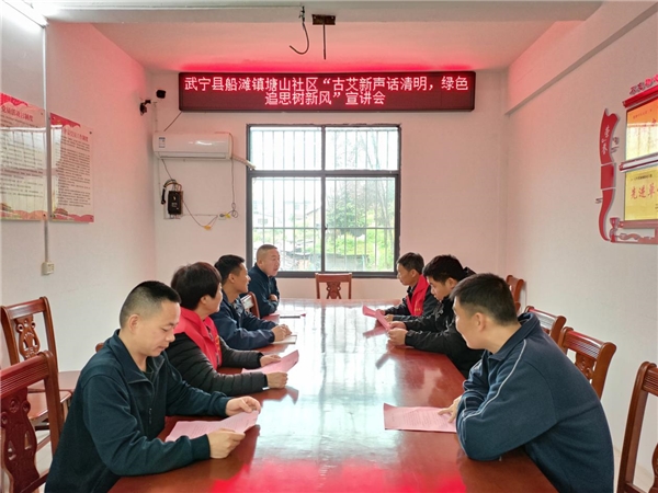 为深切缅怀先烈传统,大力推进移风易俗,倡导文明绿色祭扫,4月3日,武宁县船滩镇塘山社区组织开展“古艾新声话清明,绿色追思树新风”主题宣讲会,将文明祭扫理念送到群众身边。